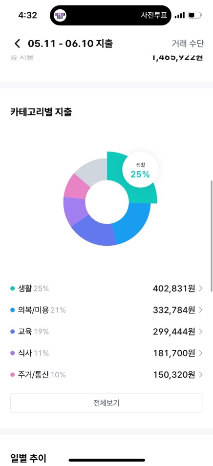 일요일마다 한 주간 지출 흐름을 뱅크샐러드 앱에서 분석해 보기로 했다.