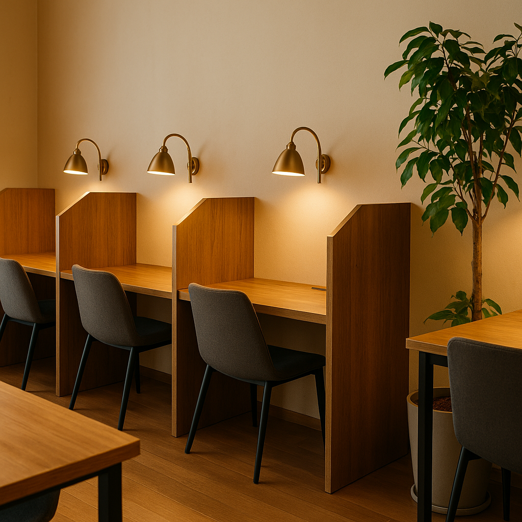 공간의 본질이 이미 갖춰져 있다면, 조명, 향기, 가구 배치만 바꿔도 전혀 다른 느낌의 스터디카페가 됩니다.