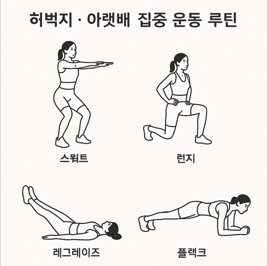 유산소 + 근력을 병행해야 지방이 효과적으로 빠지고 허벅지·아랫배 라인이 살아남